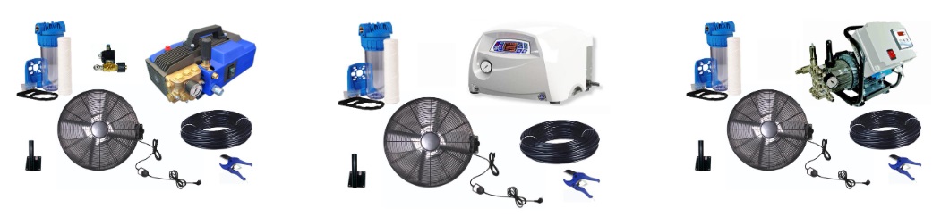 La brumisation haute pression est utilisée dans de nombreux domaines économiques tels que l’agriculture (rafraîchissement et contrôle de l’hygrométrie des bâtiments d’élevage, fraîcheur pour les plantes cultivées sous serre), l’agro-alimentaire (pour le rafraîchissement d’entrepôts et la bonne tenue des légumes, fruits, poissons et crustacés sur les étals des magasins) l’industrie (rafraîchissement des locaux, rabattage des poussières et assainissement des zones saturées en particules;