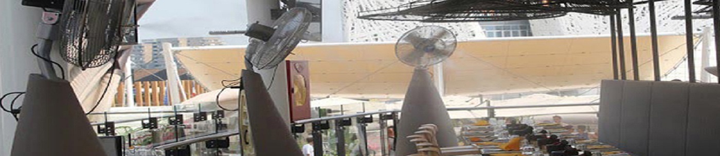 En été l’utilisation des "ventilateurs brumisateurs autonomes" est la solution la plus simple et la plus efficace pour rafraîchir les espaces ou terrasses en plein air. En installant ces ventilateurs vous ferez de votre terrasse une oasis de fraîcheur. La brumisation abaisse la température et peut stopper les pollens, les insectes et les odeurs. Les ventilateurs autonomes sont utilisés dans de nombreuses situations, là où un système traditionnel de climatisation ne donnerait aucun résultat: vérandas, parcs thématiques, hôtels, restaurants, discothèques, établissements balnéaires, manifestations, show-rooms, gymnases.